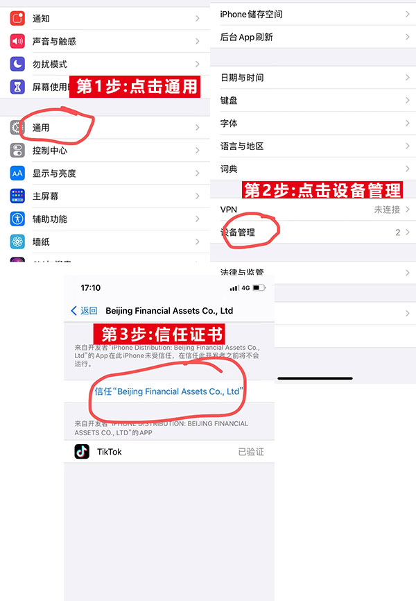 1.打开手机设置-通用-设备管理-安装不受信任证书即可使用 点开通用
